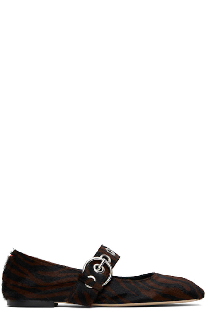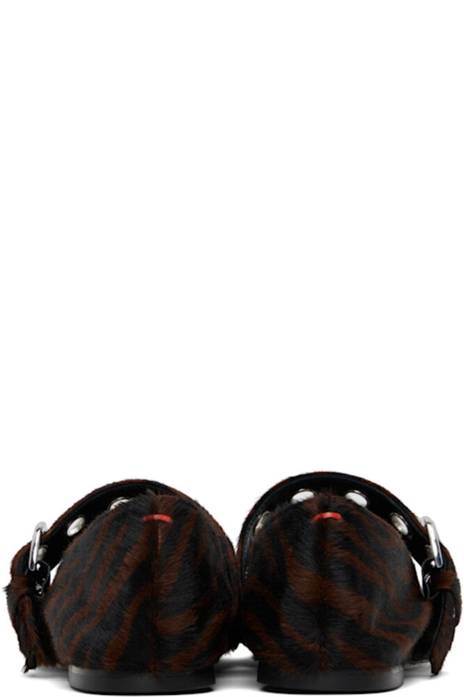 Балетки в стиле Мэри Джейн из телячьей шерсти черного и коричневого цветов.