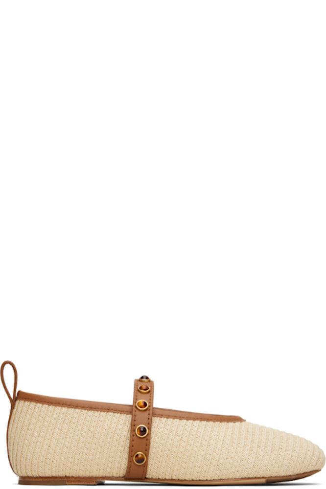 Балетки из плетеной соломы бежевого цвета.