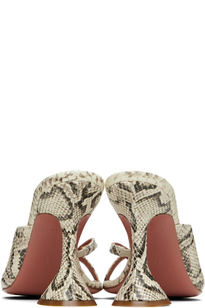 Босоножки из кожи с тиснением под змею в кремово-белых и черных тонах.