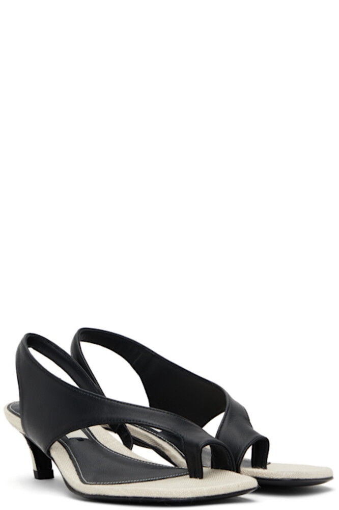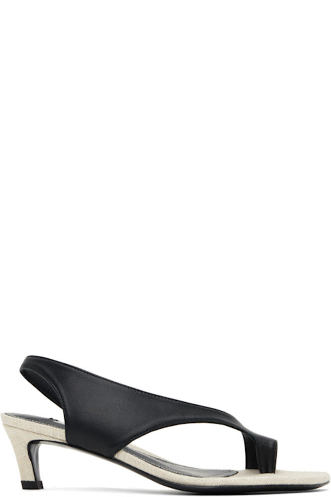 Черные и бежевые кожаные босоножки на каблуке TOTEME