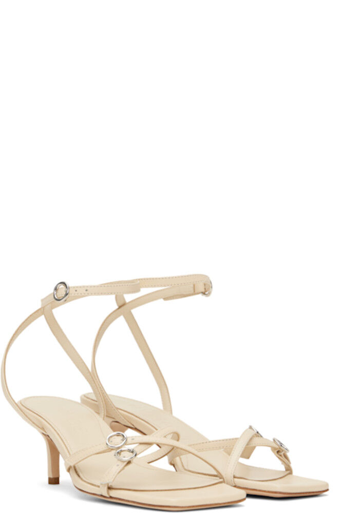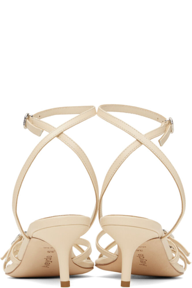 Босоножки на каблуке из полированной кожи наппа в кремовом цвете.