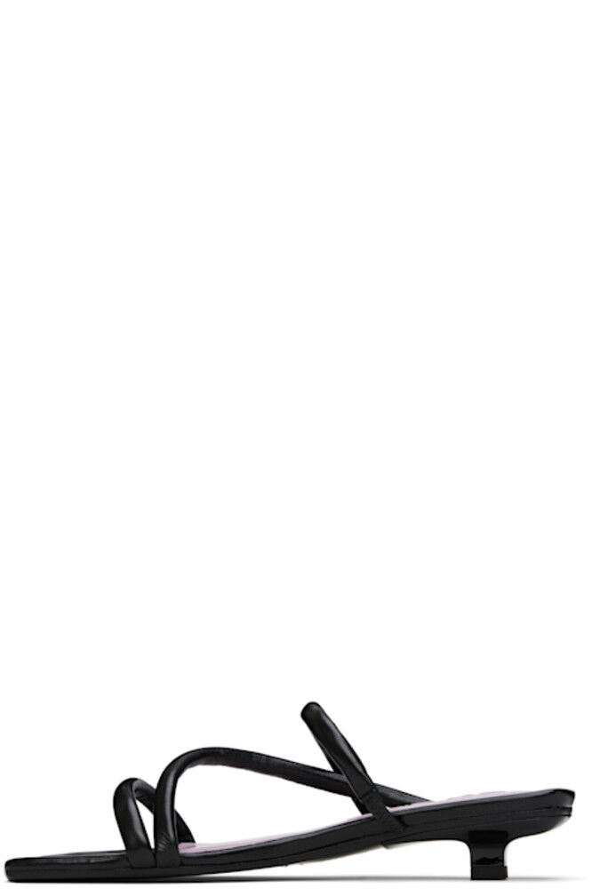 Босоножки на каблуке из полированной кожи наппа черного цвета.