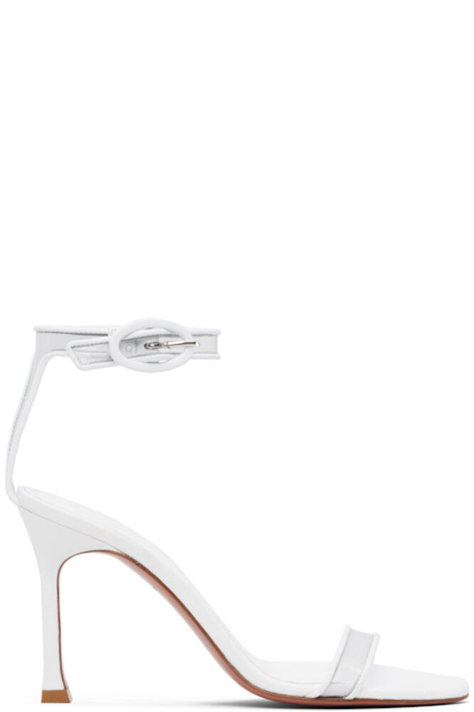 Босоножки на каблуке из полированной овечьей кожи наппа белого цвета.