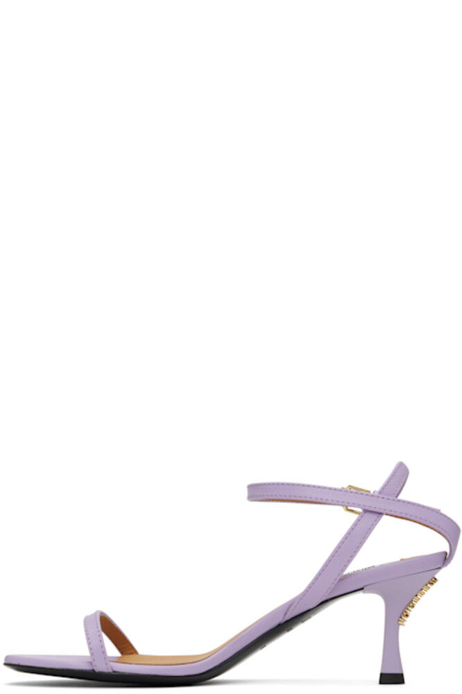 Фиолетовые босоножки на каблуке с пряжкой и бантом Moschino