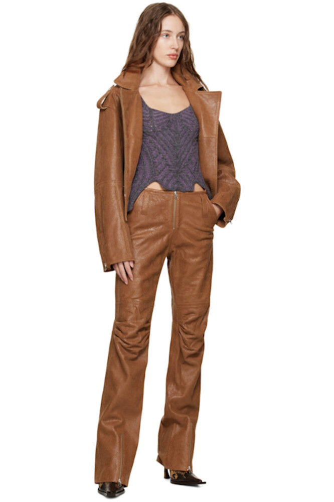 Эксклюзивные коричневые кожаные брюки SSENSE Juku KNWLS