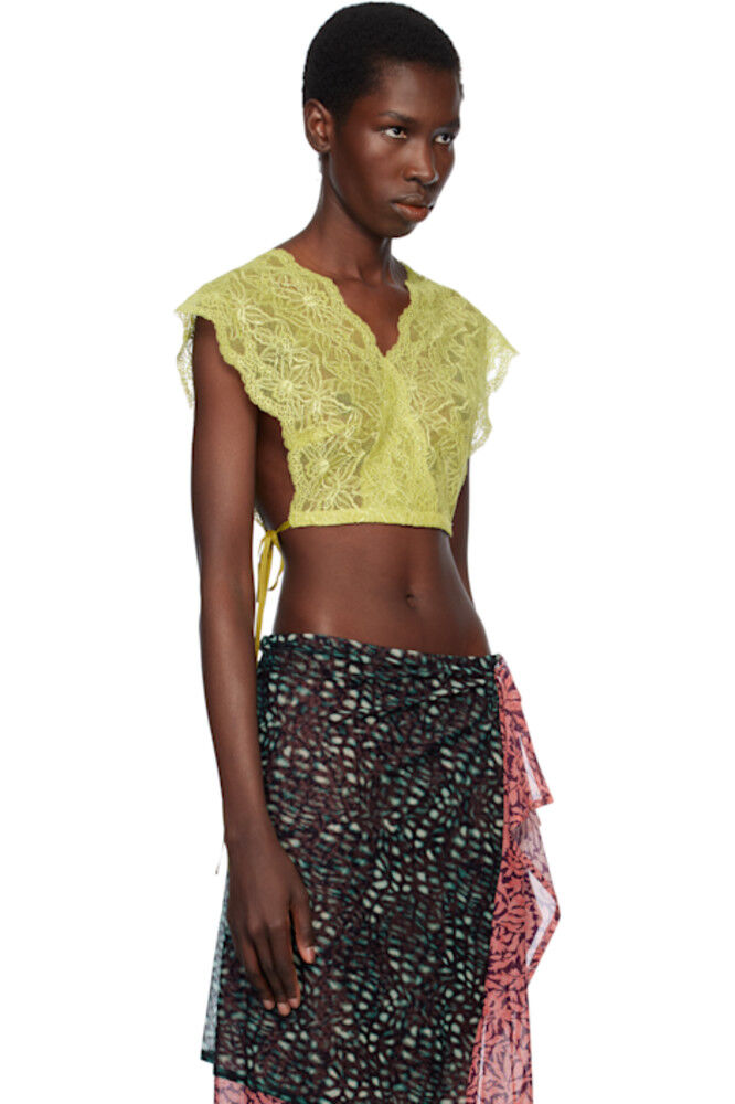 Зеленый кружевной укороченный топ Dries Van Noten 22 691₽