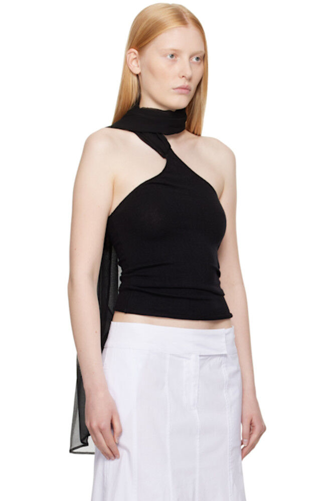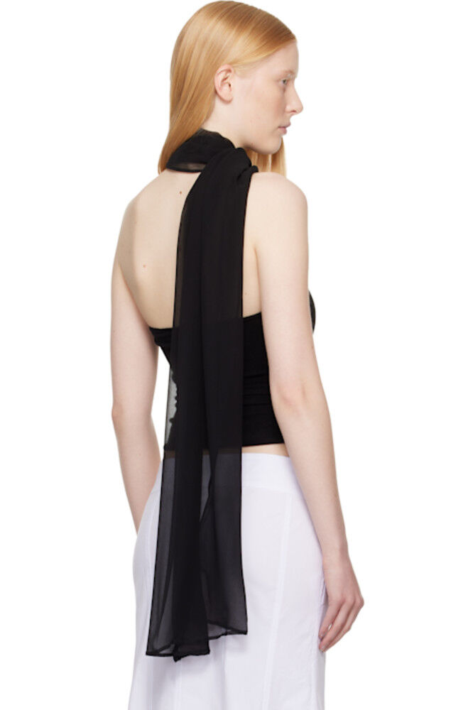 · Вшитый шарф из шелкового шифона на асимметричной горловине