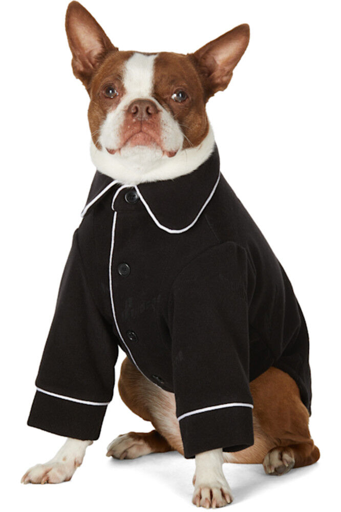 Верх пижамы из флиса с длинными рукавами черного цвета. Вышитый тональный логотип по всей длине. Отложной воротник. Застежка на пуговицы спереди. Нашивка с логотипом на частично эластичном изогнутом подоле. Тональная фурнитура. Доступно эксклюзивно в SSENSE. XS: 16" шея x 8" грудь x 16" спина S: 18" шея x 10" грудь x 17,5" спина M: 19" шея x 10" грудь x 20,5" спина L: 21" шея x 11" грудь x 22" спина Имя: Пиклз Размер: XS Порода: Бостон-терьер Вес: 25 фунтов