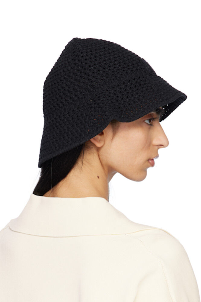 Вязаная крючком шляпа-ведро из хлопчатобумажной смеси черного цвета.