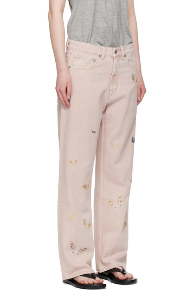 Джинсы из неэластичного денима. Легкая потертость и вышитая графика по всей длине.