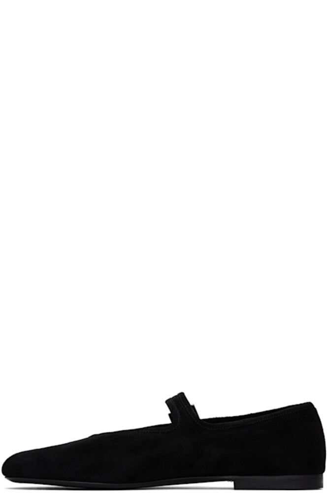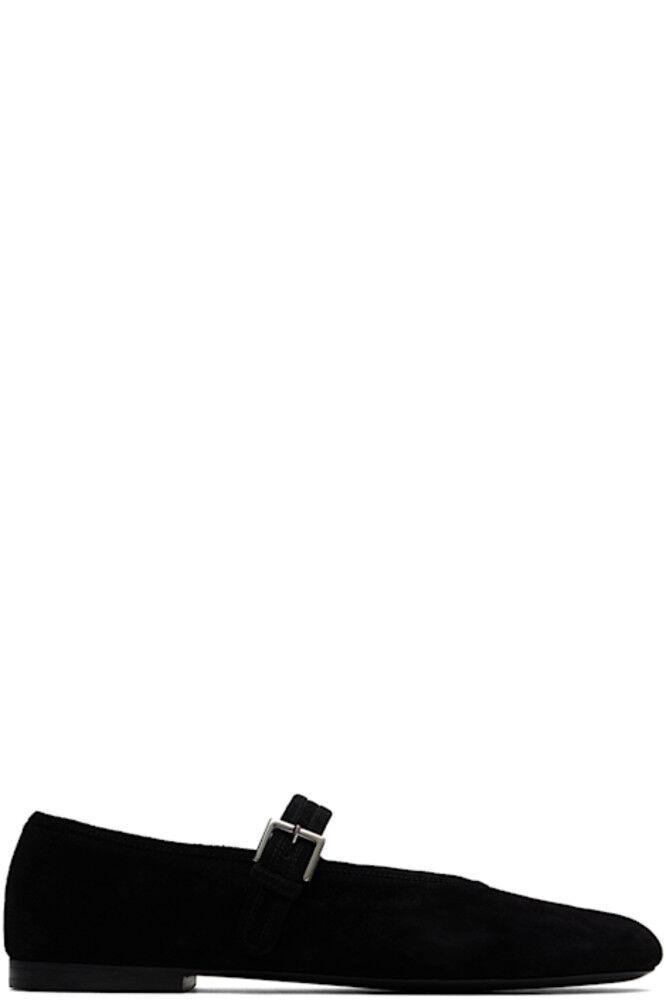 Замшевые балетки в стиле Мэри Джейн черного цвета.