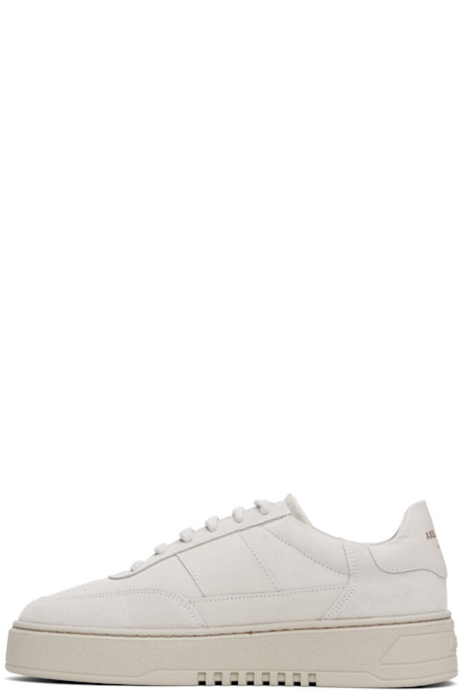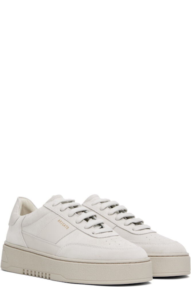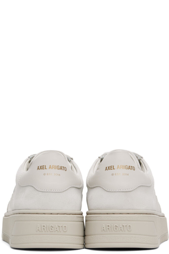 Изготовленные вручную низкие кроссовки из замши и полированной кожи с сертификатом LWG бежевого цвета. · Перфорированная отделка на носке · Шнуровка · Мягкий язычок и воротник · Логотип на внешней стороне и на пятке · Подкладка из полированной кожи, замши и переработанной сетки · Логотип, тисненый на промежуточной подошве из крепированной резины · Резиновая подошва с протектором