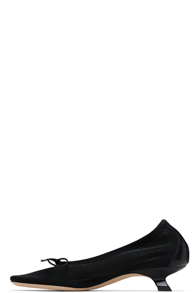 Каблуки из сетки и зернистой кожи черного цвета.