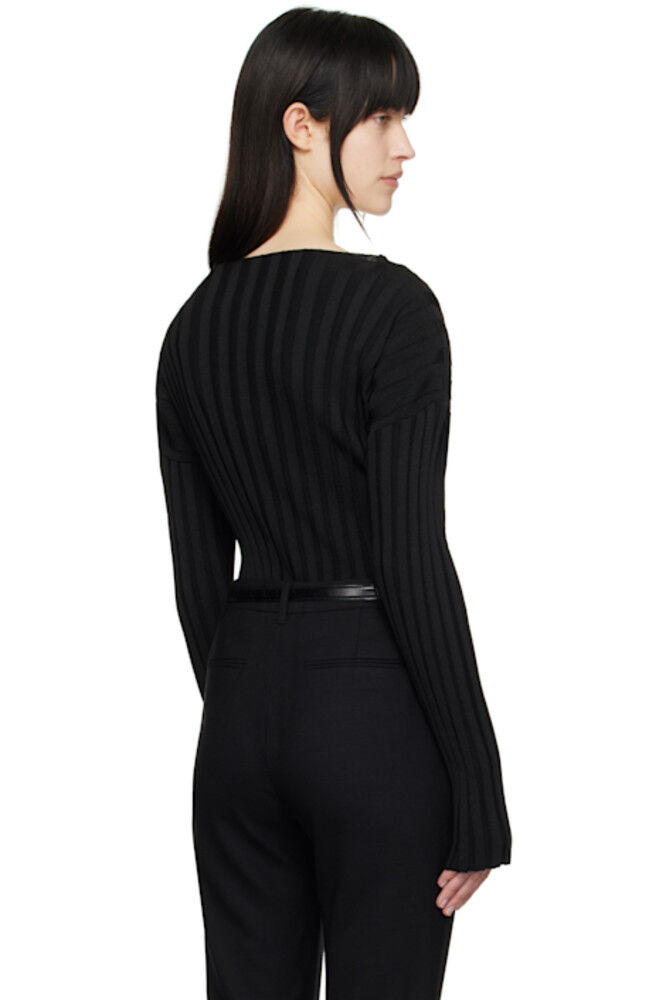 Черный ребристый кардиган без воротника LE17SEPTEMBRE