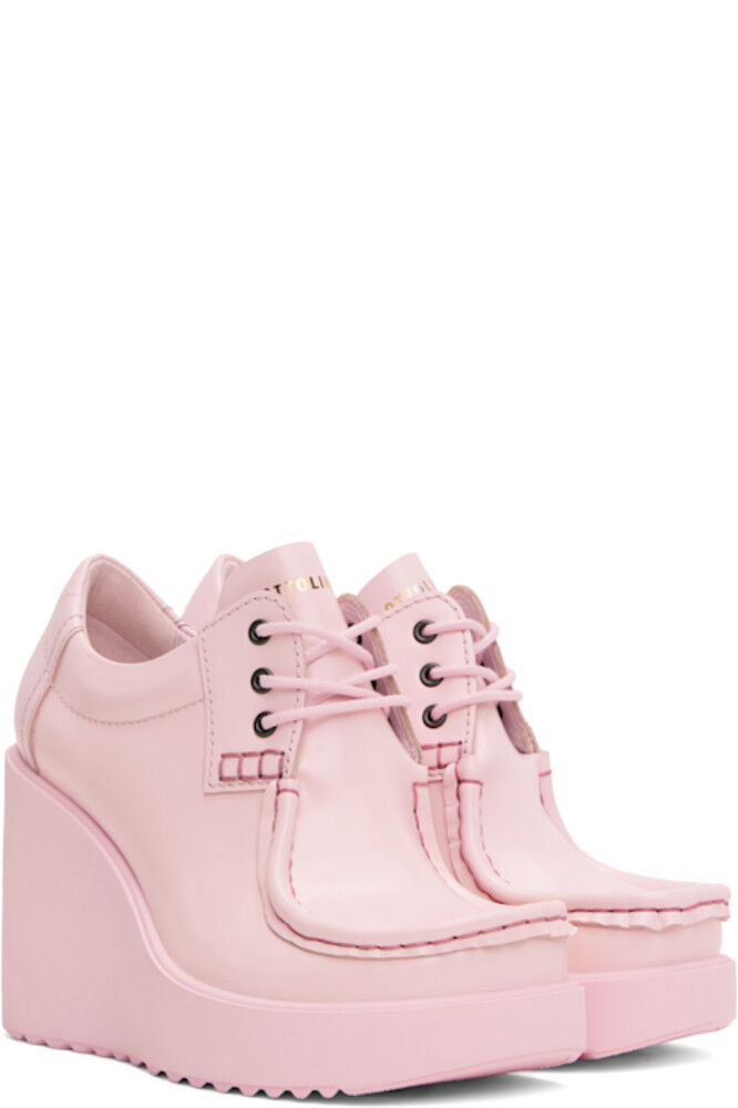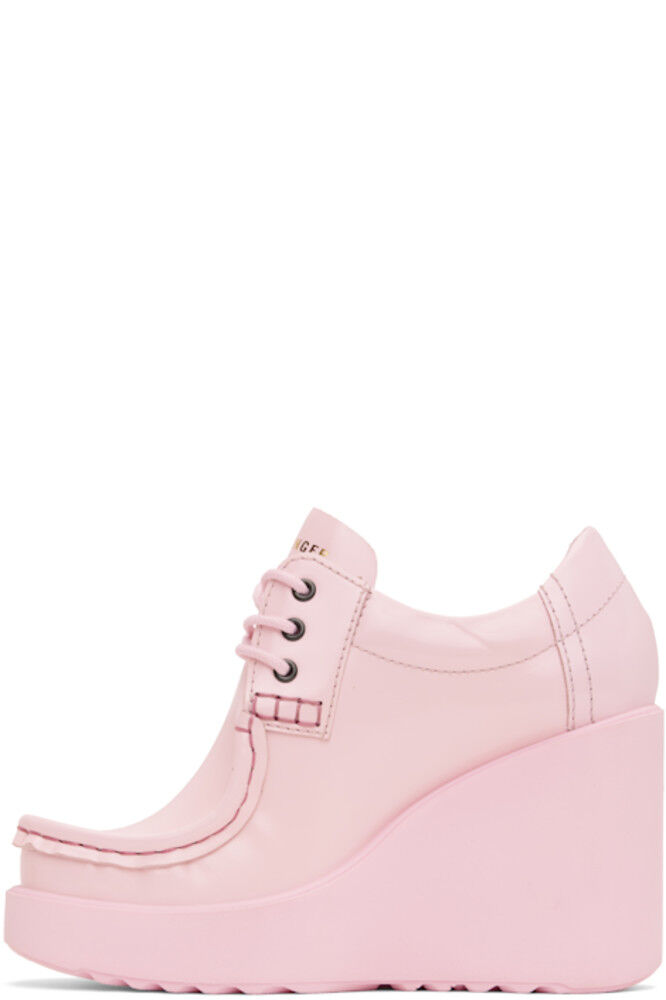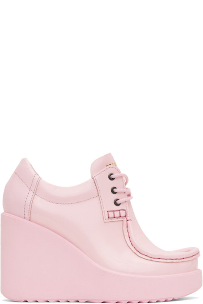 Лакированные каблуки розового цвета. · Мягкий носок · Шнуровка · Логотип на язычке · Мягкий воротник · Подкладка из замши и полированной кожи · Промежуточная подошва из вспененной резины и каблук-танкетка · Резиновая подошва с протектором · Платформа: высота 1 дюйм · Каблук: высота 3,5 дюйма Часть сотрудничества Ottolinger x ECCO.kollektive.