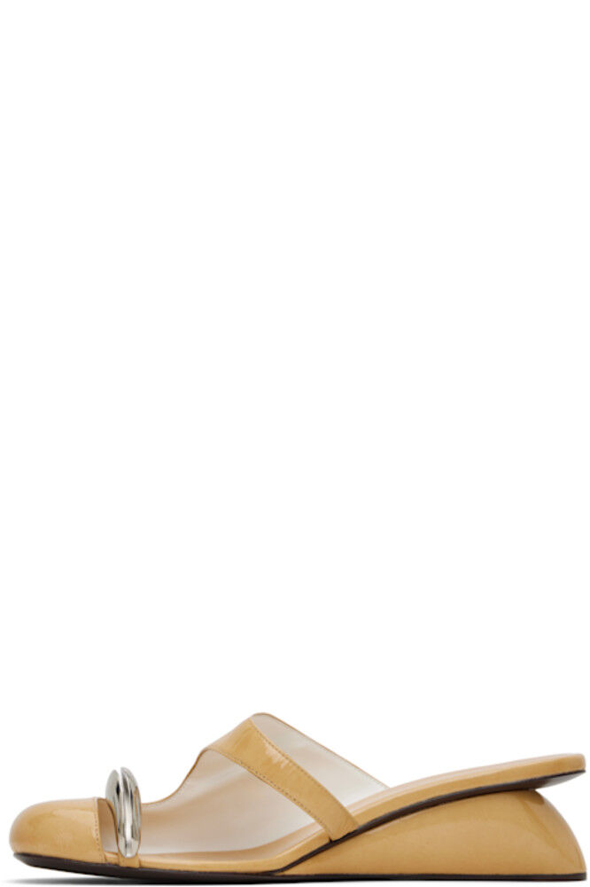 Лакированные мюли из козьей кожи бежевого цвета.