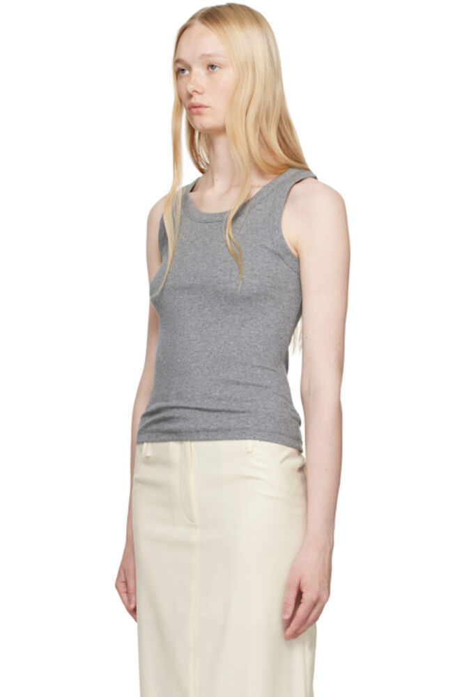 Майка из органического хлопка в рубчик из джерси. Круглый вырез горловины.