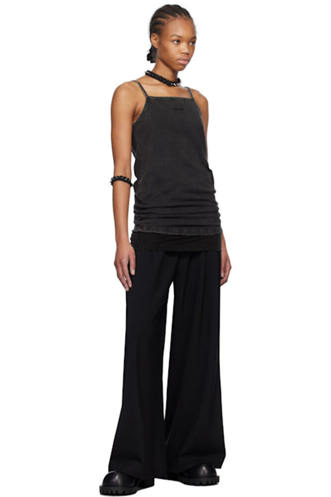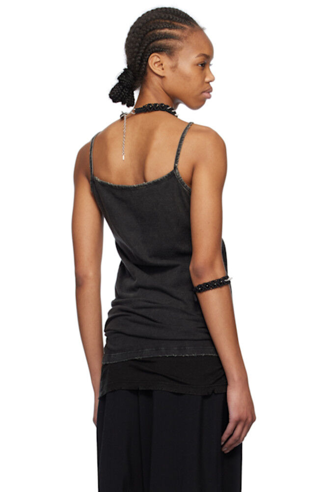Майка из хлопкового трикотажа и трикотажа с добавлением лиоцелла и шерсти. Легкие выцветания и потертости по всей длине.