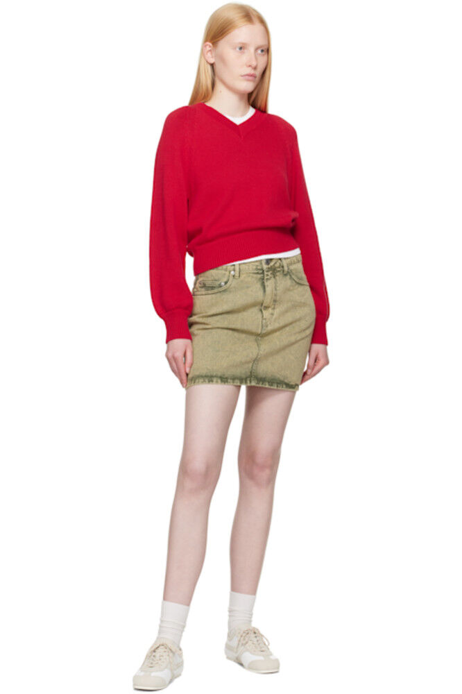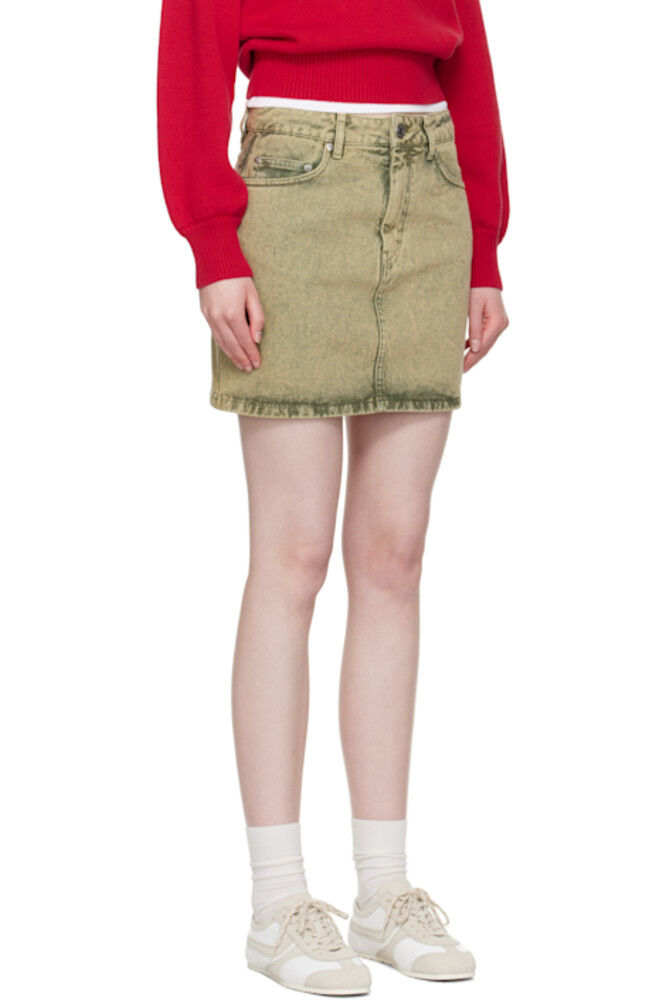 Мини-юбка из хлопкового денима цвета хаки AMI Paris