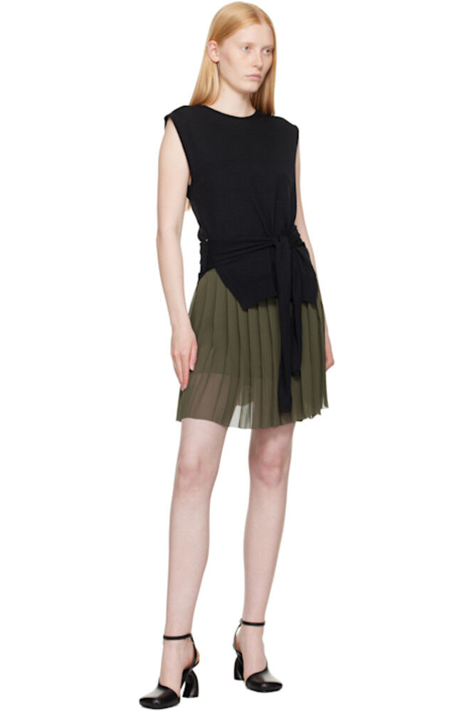 Плиссированная мини-юбка цвета хаки AMI Paris