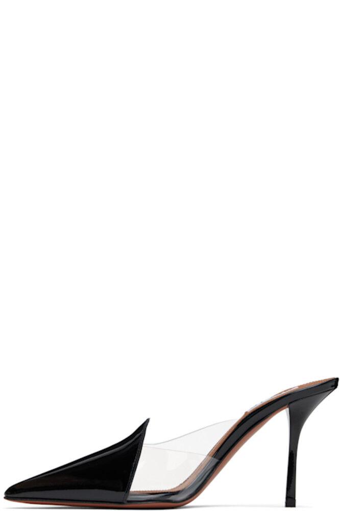 Мюли из прозрачного винила и лакированной телячьей кожи черного цвета.