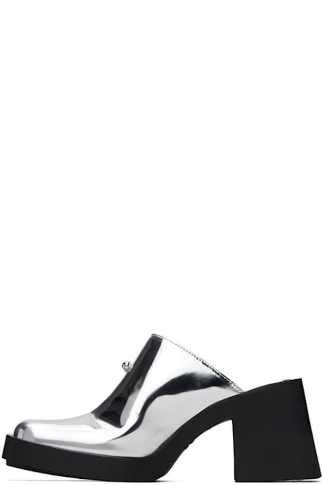 Мюли ручной работы из искусственной кожи серебристого тона.