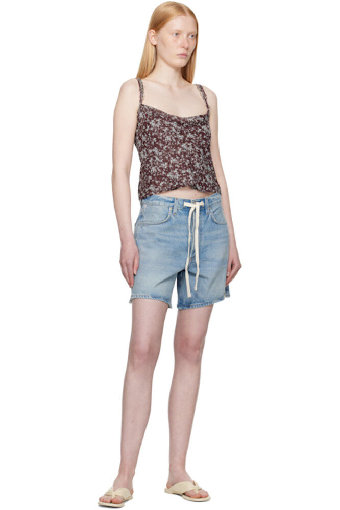 Неэластичные регенеративные джинсовые шорты из хлопчатобумажной смеси. Выцветание, потертости и легкие потертости по всей поверхности. · Шлевки для ремня · Съемный шнурок на поясе · Модель с пятью карманами · Застежка на пуговицы · Боковые швы с разрезами · Нашивка с логотипом сзади на поясе · Выгравированный логотип серебристого цвета · Контрастная строчка бежевого цвета