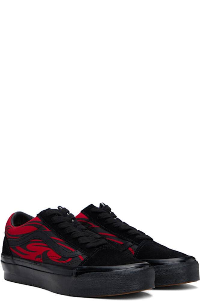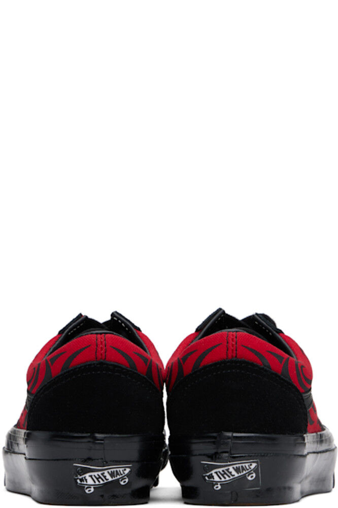 Низкие замшевые и 8-унциевые кроссовки черного и красного цвета. · Графический рисунок напечатан по всей поверхности · Шнуровка · Мягкий язычок и воротник · Боковые полосы из зернистой кожи · Прорезиненная нашивка с логотипом на пятке · Съемная мягкая стелька из пеноматериала Sola ADC · Подкладка из зернистой кожи и холщовой ткани · Резиновая подошва с протектором