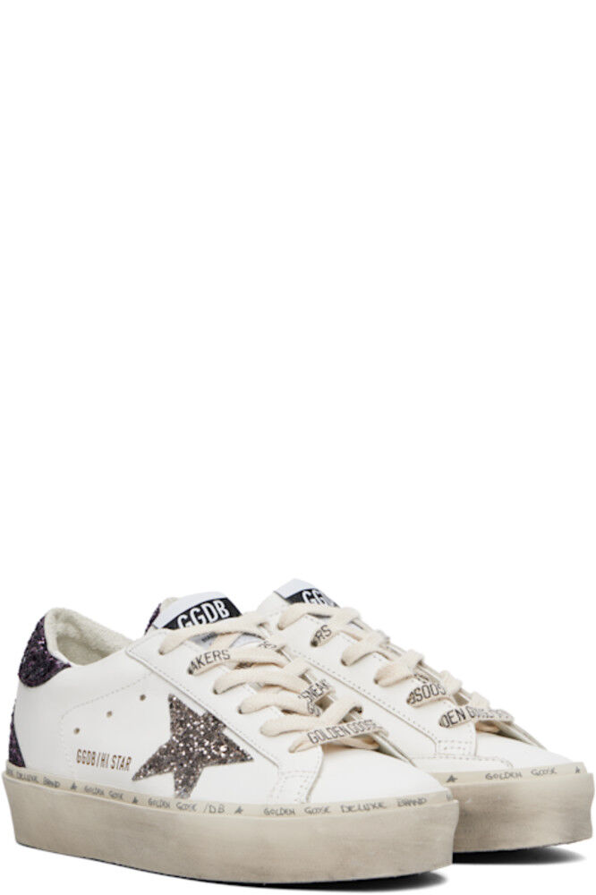 Низкие кроссовки из зернистой кожи, изготовленные вручную, белого цвета. · Шнуровка с логотипом · Флажок с логотипом на язычке · Мягкий воротник · Перфорация по бокам · Печать логотипа и блестящая аппликация в виде звезды на внешней стороне · Печать логотипа на блестящей петельке на пятке · Подкладка из зернистой кожи и махровой ткани · Резиновая подошва с протектором