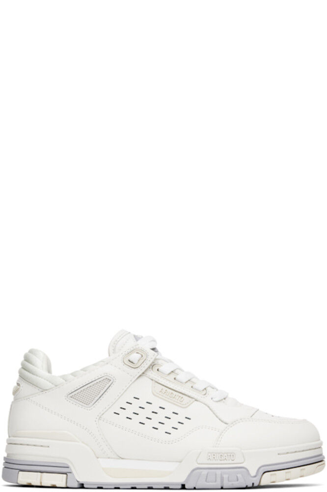 Низкие кроссовки из полированной кожи и переработанного джерси, изготовленные вручную, белого цвета. · Перфорированная отделка по всей поверхности · Застежка на шнуровке · Прорезиненная нашивка с логотипом на мягком язычке · Мягкий воротник · Прорезиненная аппликация с логотипом на внешней стороне и пятке · Тисненый логотип на внешней стороне · Подкладка из переработанной сетки · Промежуточная подошва из вспененного каучука EVA · Резиновая подошва с протектором