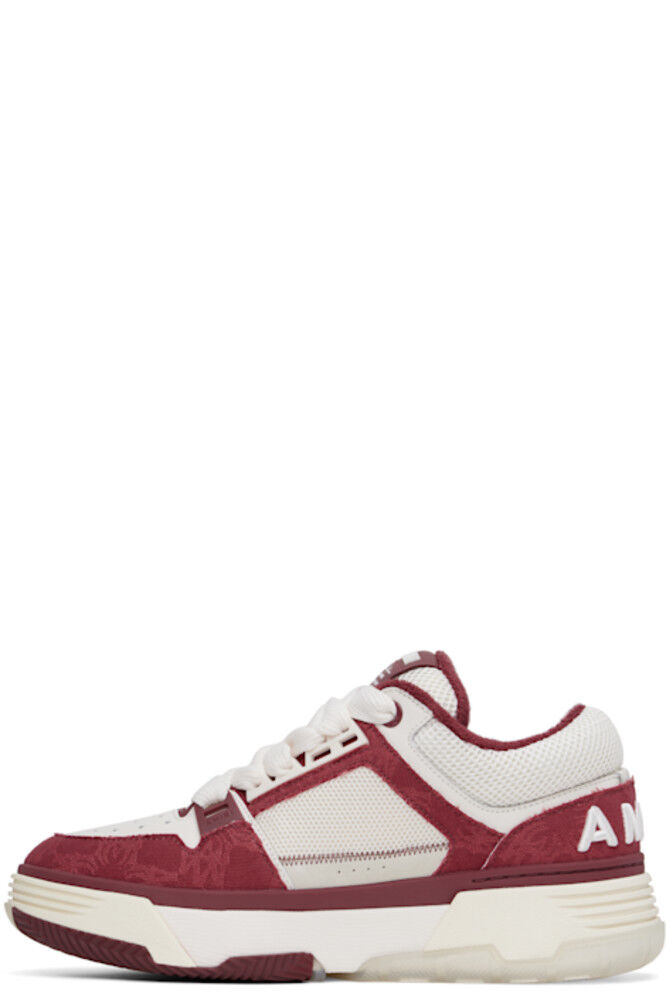Низкие кроссовки из полированной кожи, денима и сетки белого и красного цвета. · Жаккардовый узор с логотипом и необработанные края по всей длине · Графическая перфорация на носке · Шнуровка · Нашивка с логотипом на мягком язычке · Мягкий воротник · Логотип приклеен с внешней стороны · Логотип вышит на заднике · Махровая подкладка · Логотип вытиснен на резиновой подошве · Резиновая подошва с протектором · Платформа: H1.75"