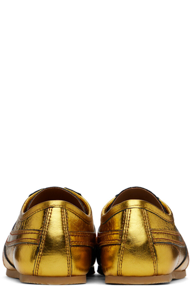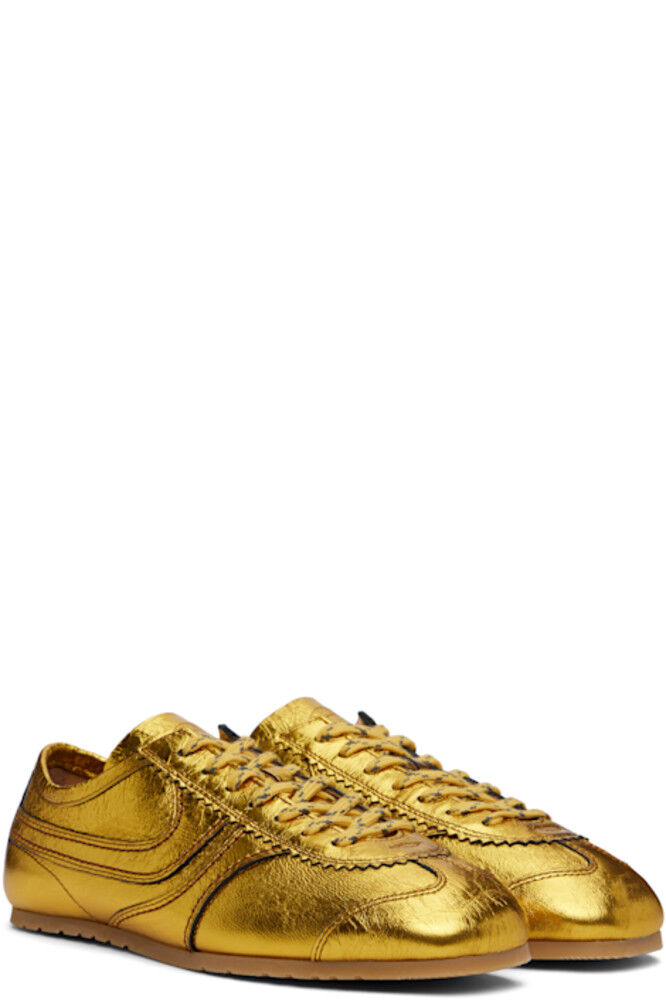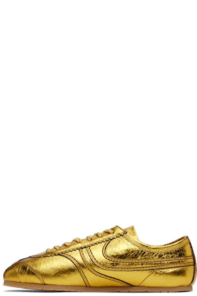 Низкие кроссовки из потрескавшейся кожи в металлическом золотистом тоне.
