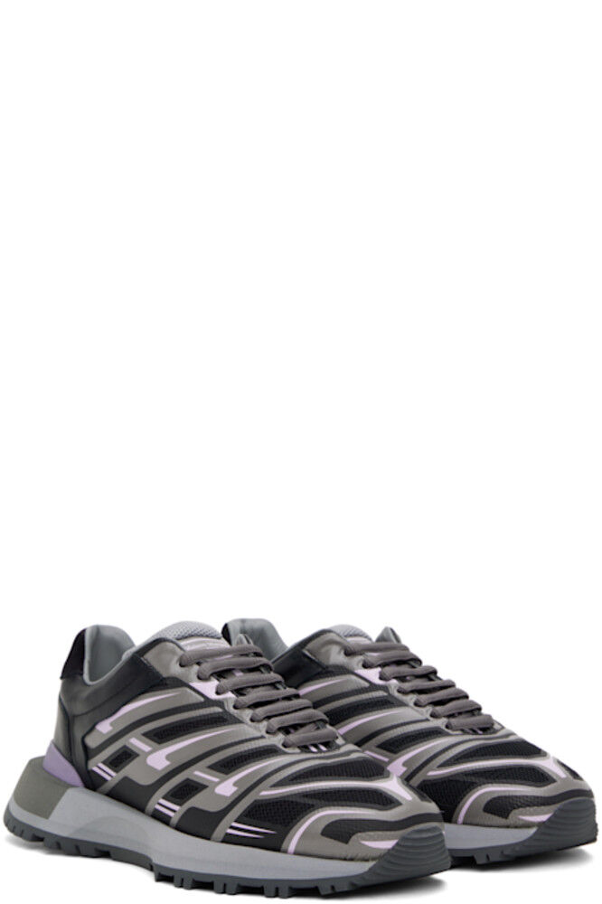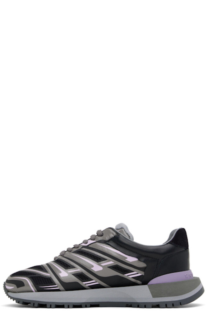Низкие кроссовки из сетчатой ткани и полированной телячьей кожи в оттенках черного, серого и фиолетового. · Проклеенная отделка по всей длине · Шнуровка · Логотип, напечатанный на мягком язычке · Мягкий воротник · Фирменная белая строчка на пятке · Логотип, тисненый на заднике · Сетчатая подкладка · Промежуточная подошва из вспененной резины · Резиновая подошва с протектором