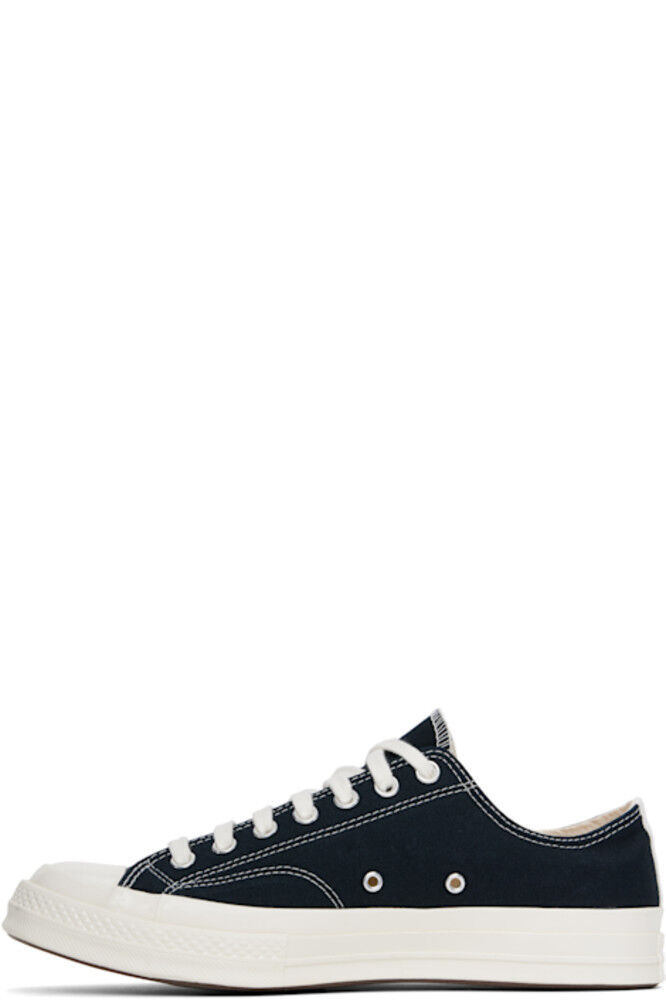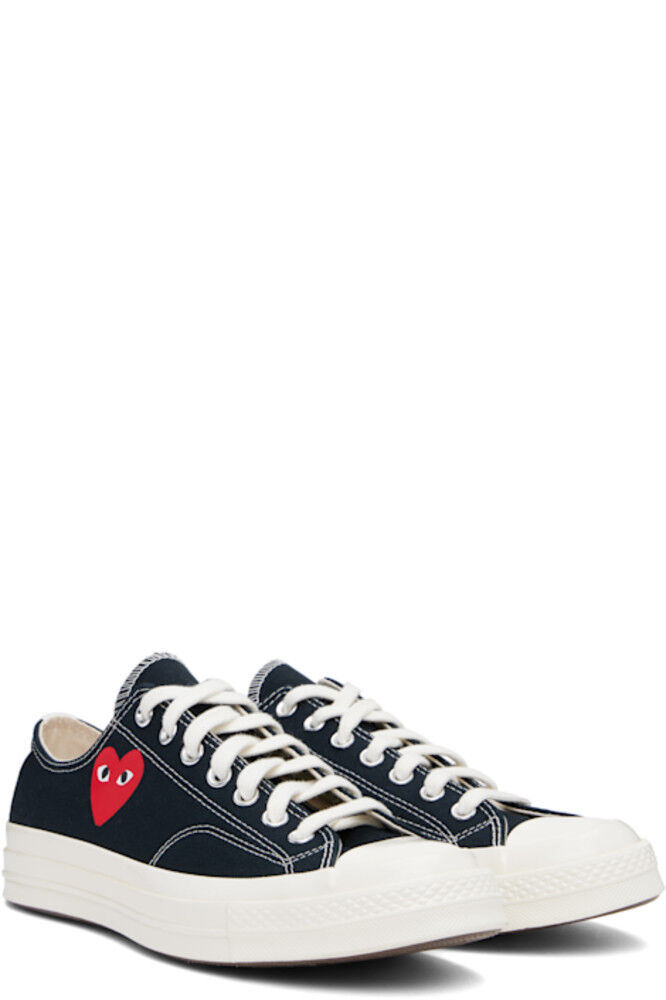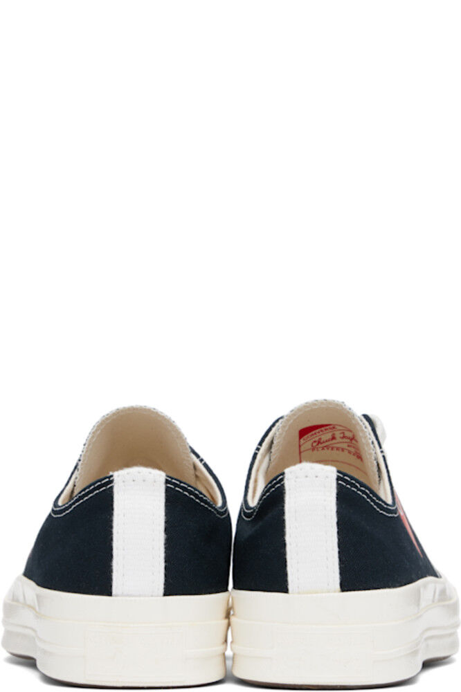 Низкие парусиновые кеды черного цвета. · Резиновый носок · Шнуровка · Логотип, напечатанный на внешней стороне · Металлические люверсы с внутренней стороны · Тесьма на пятке · Прорезиненная нашивка с логотипом на пятке · Мягкая стелька Ortholite® · Резиновая подошва с протектором Часть сотрудничества Comme des Garçons Play x Converse.