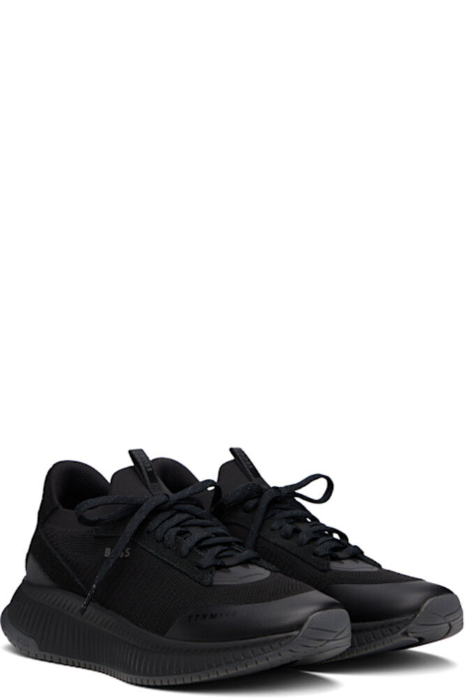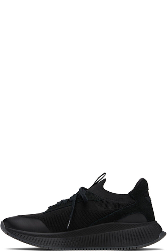 Низкие трикотажные кеды черного цвета. · Текст на носке · Резиновая отделка на носке и союзке · Шнуровка · Петля с логотипом на язычке · Трикотажный воротник в стиле носка · Мягкий задний воротник · Прорезиненный логотип на внешней стороне и на заднике · Замшевая отделка на пятке и по бокам · Подкладка из искусственной замши · Текстурированная вспененная резиновая подошва · Резиновая подошва с протектором