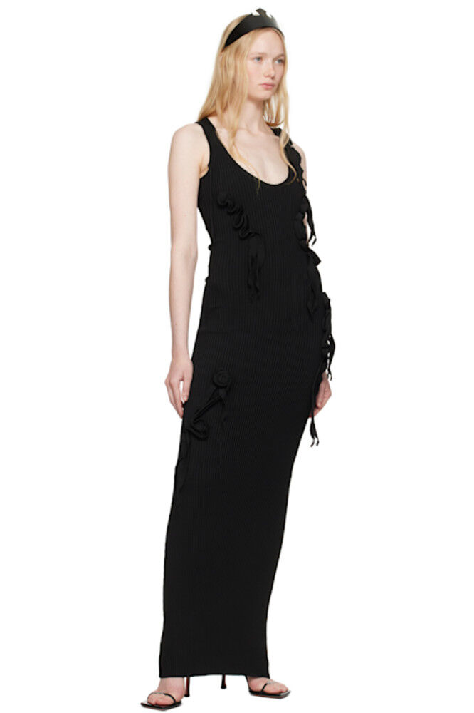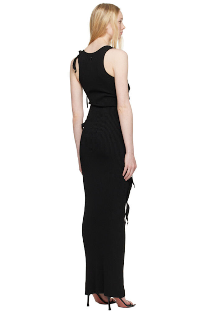 Черное трикотажное ленточное длинное платье-макси Coperni