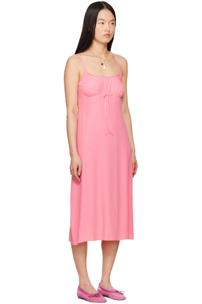 Розовое платье-комбинация миди с бантом и неглиже Simone Rocha