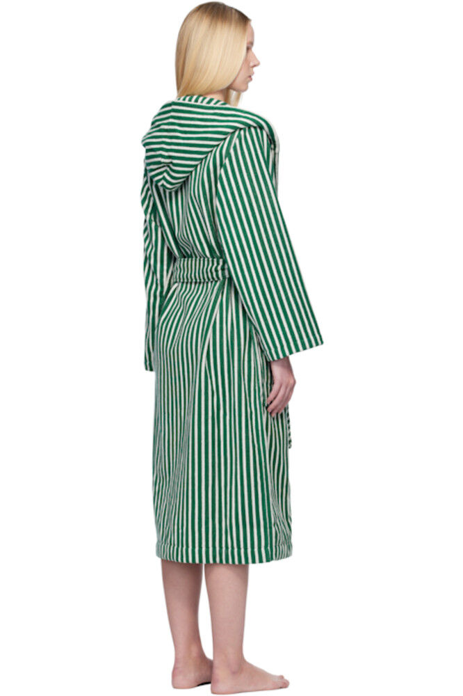 Зеленый и белый махровый халат с капюшоном Tekla