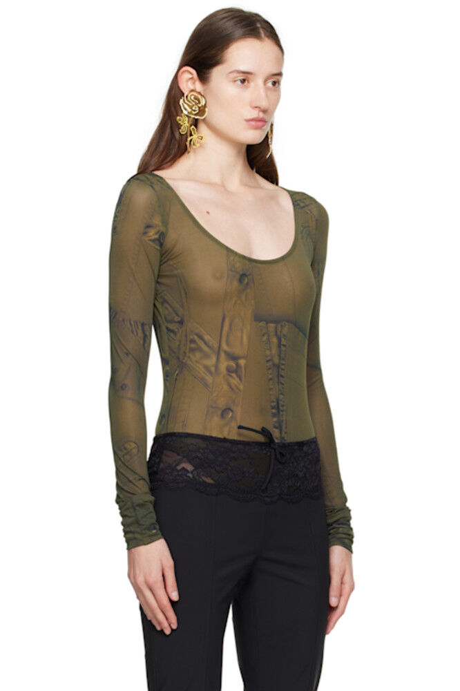 Полупрозрачный комбинезон из эластичного нейлонового джерси. Узор trompe l'œil, напечатанный по всему изделию.