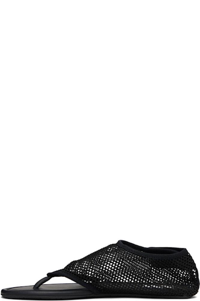 Прозрачные сетчатые босоножки черного цвета.