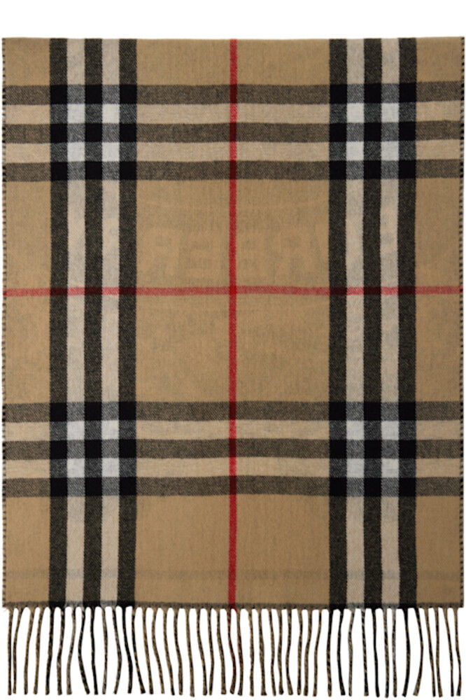 Бежевый широкий двусторонний шарф EKD из кашемира Burberry 102 099₽
