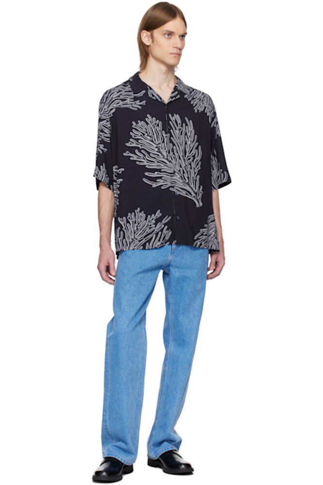 Рубашка из вискозы полотняного переплетения. Графический рисунок напечатан по всей длине.