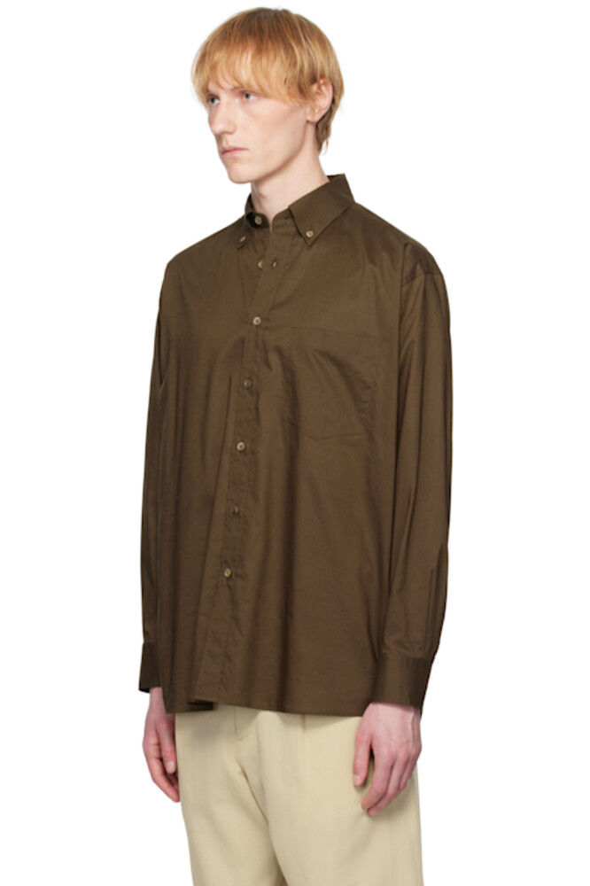 Коричневая стираная рубашка Finx Typewriter на пуговицах AURALEE 43 934₽