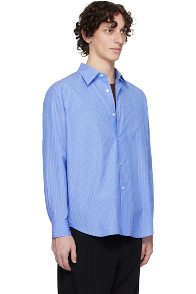 Синяя рубашка в полоску из ткани Suvin High Count AURALEE
