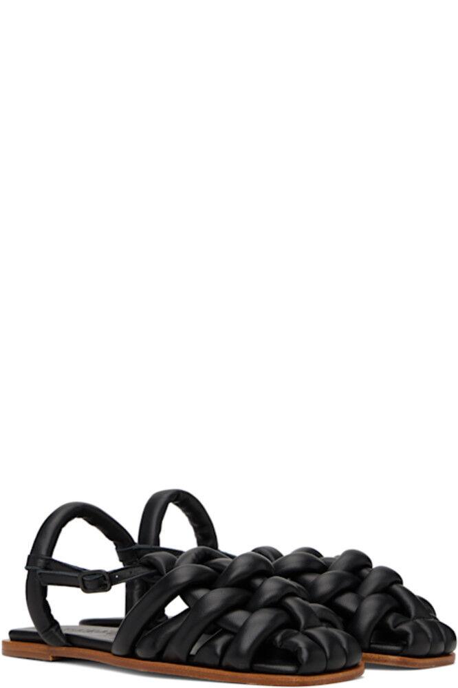 Сандалии из зернистой овчины ручной работы черного цвета.