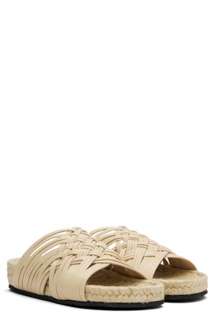 Сандалии из плетеного джута бежевого цвета.