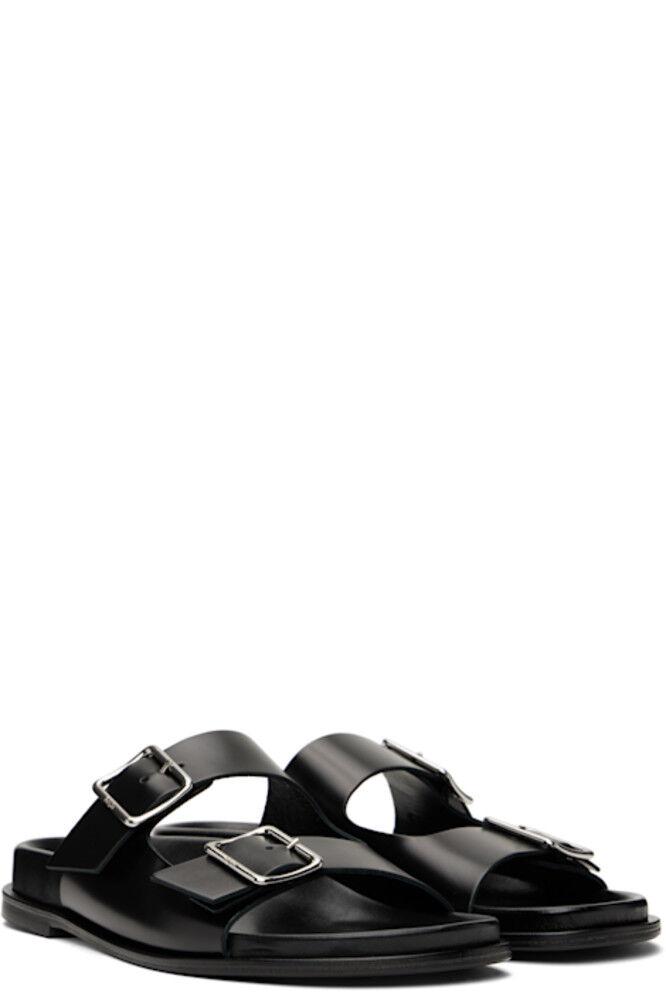 Сандалии из полированной телячьей кожи черного цвета.