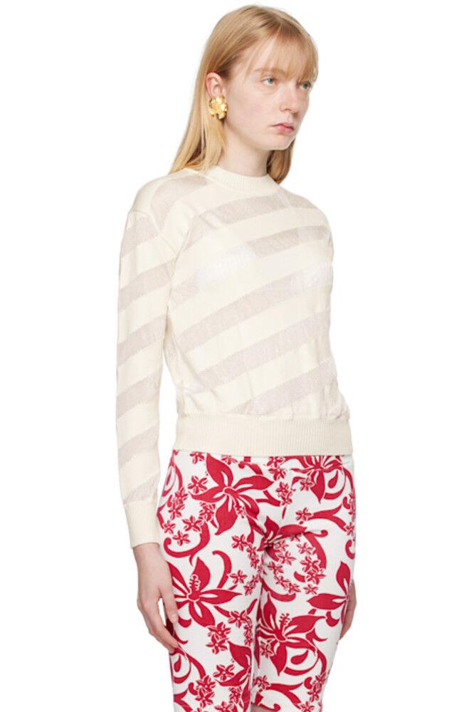 Свитер из полупрозрачной вязки из вискозы и вискозной органзы. Полоски по всему изделию.