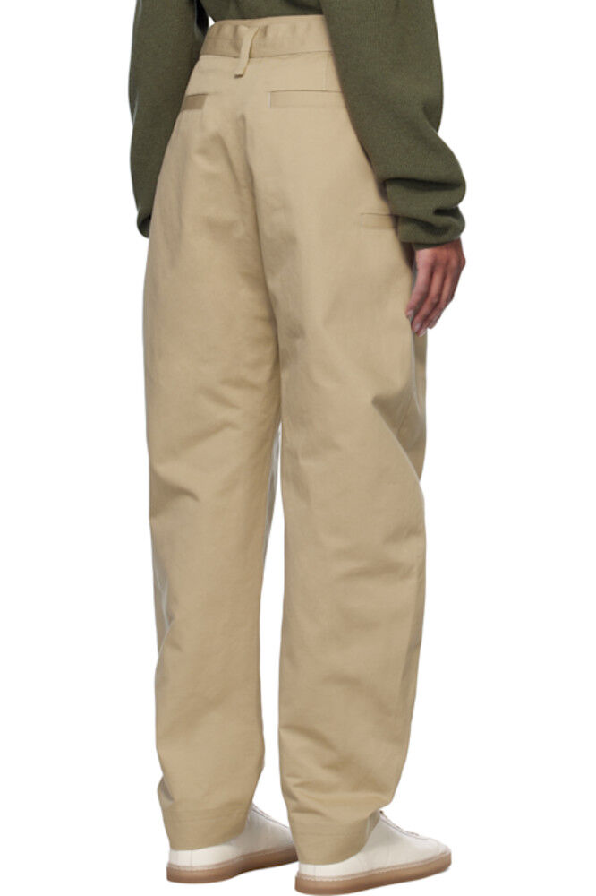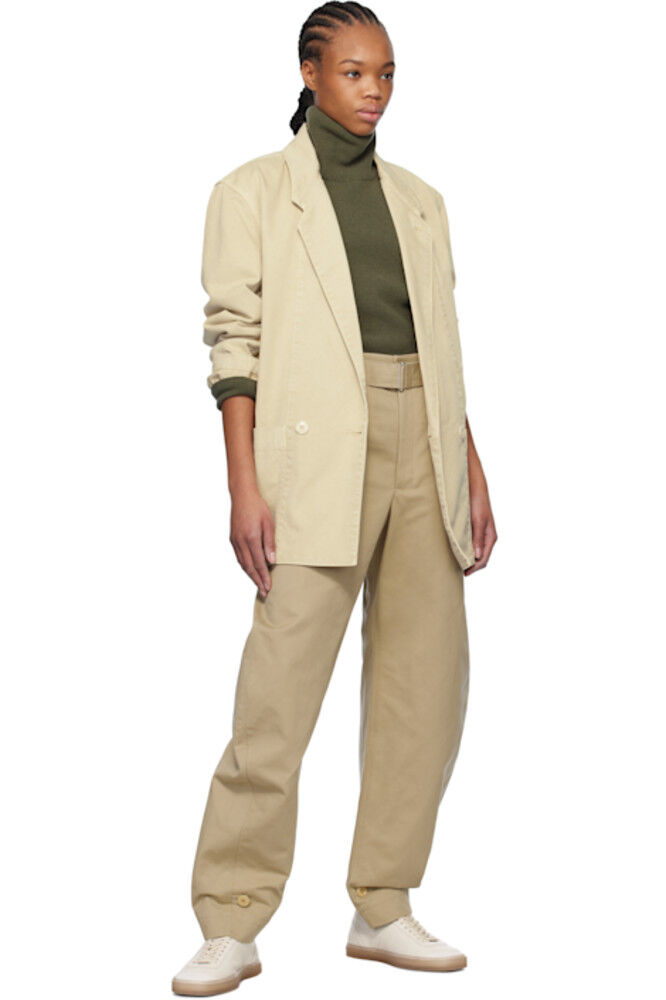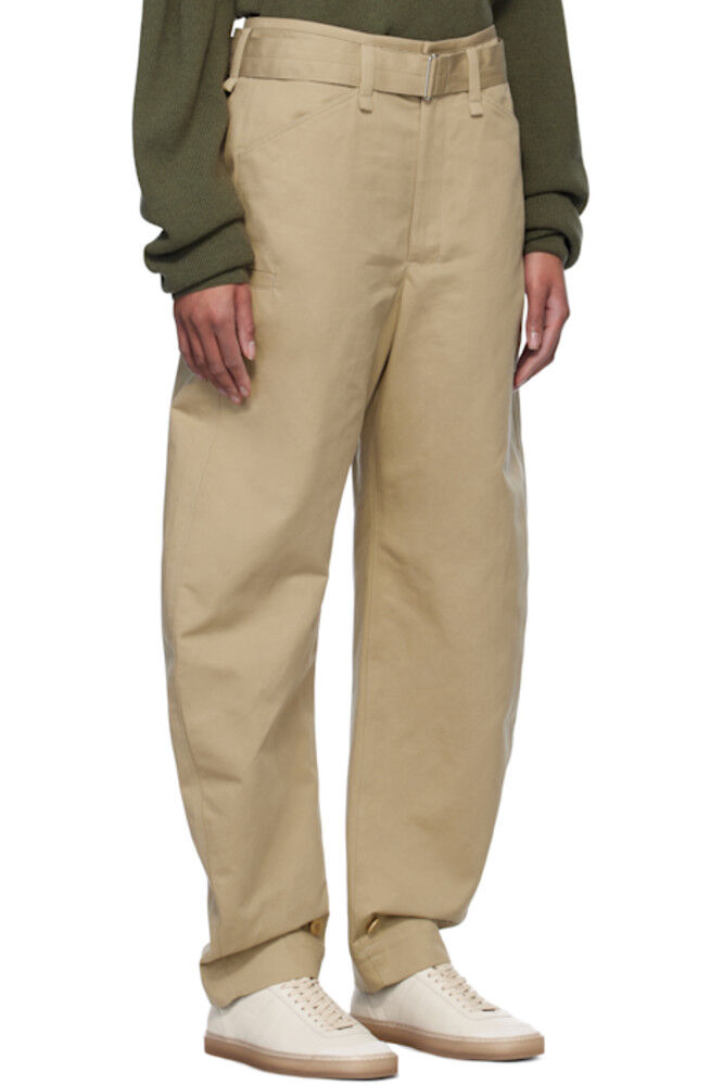 Бежевые зауженные брюки с поясом LEMAIRE
