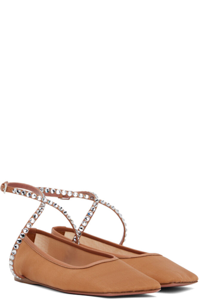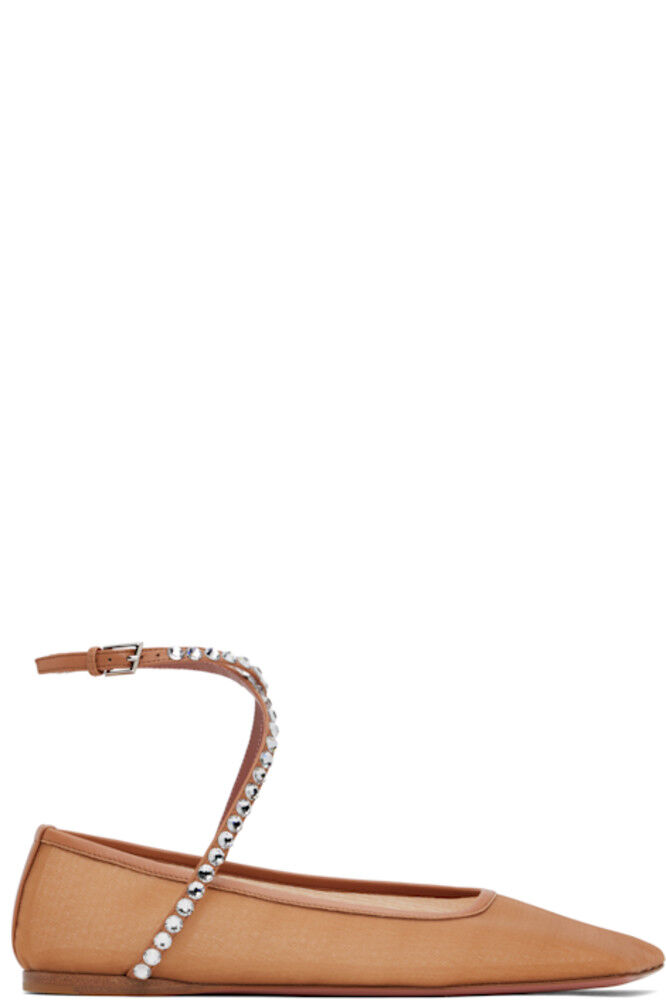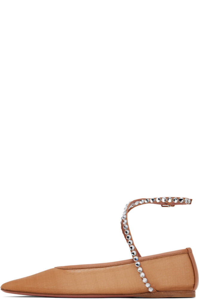 Балетки Tan Ane Mesh Crystal Ballerina Flats Amina Muaddi